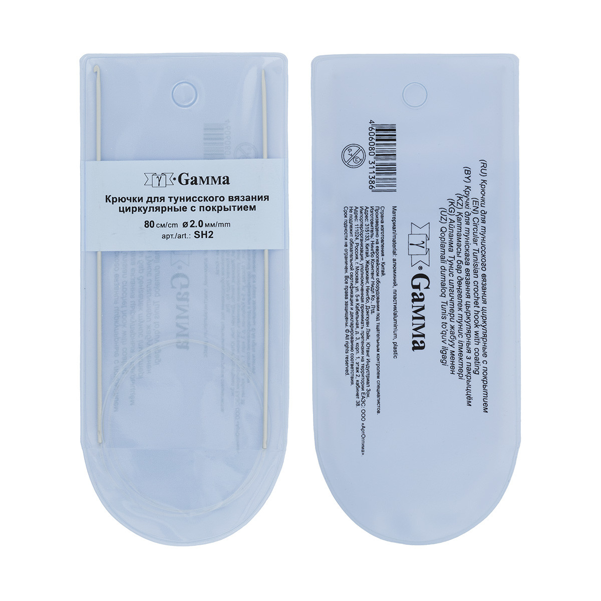Для вязания " Gamma" SH2 крючки для вязания циркулярные алюминий d 2. 0 мм 80 см в чехле .